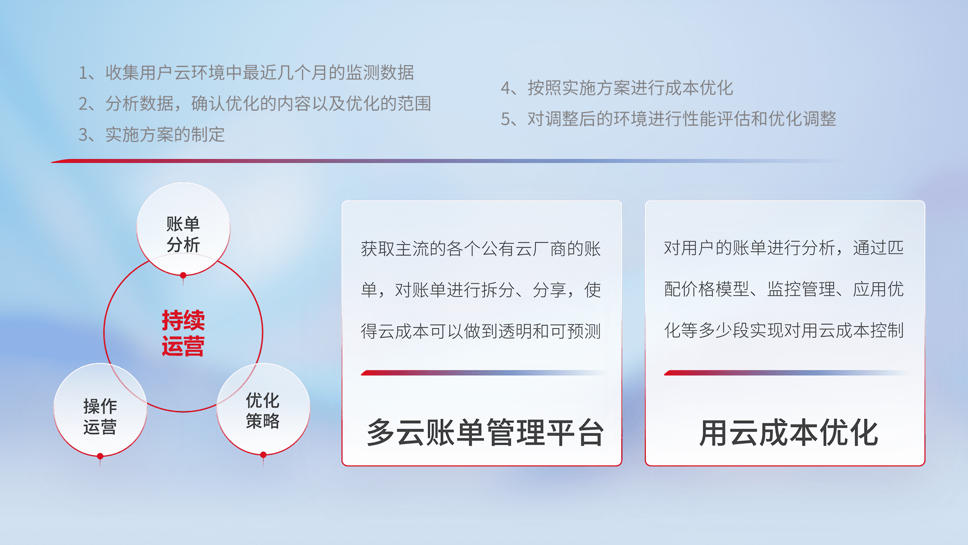监控业务系统资源开销,,,,对资源的消耗精确计量,,,,实现费用的透明化管理,,不断提升资源使用率,,调整资源购买方式,,,降低资源费用成本,,,,用云成本可预测、、、、用云费用可优化,,,云资源配额有据可依。。。
